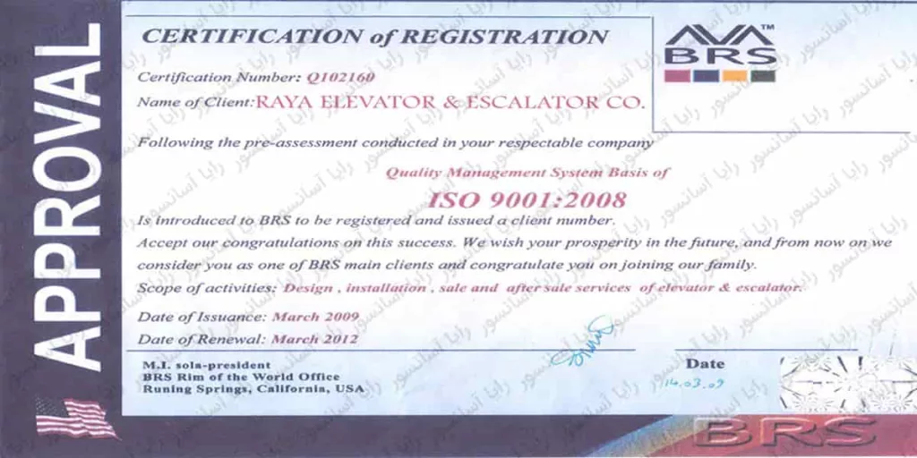 عضو رسمی اتحادیه کشوری آسانسور و پلهبرقی ایران