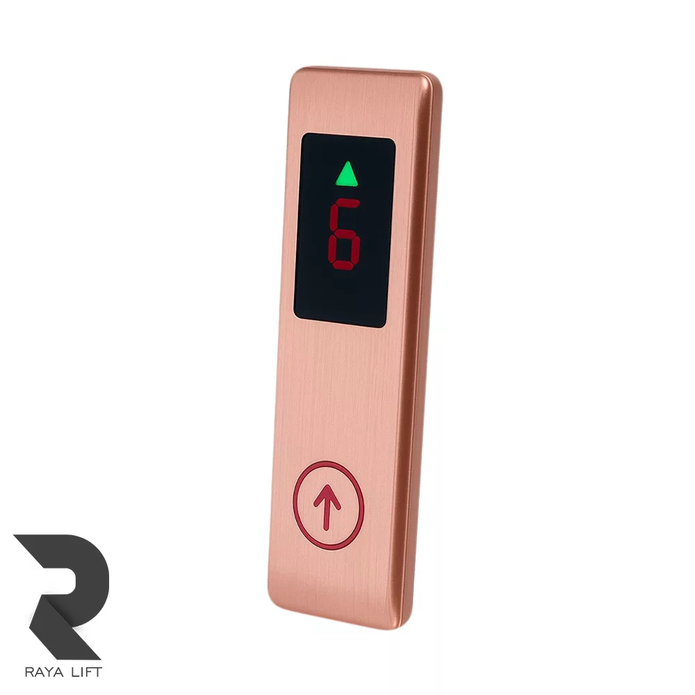 این مدل از پنل آسانسور را می توان به صورت سفارشی و با رنگ های نقره ای و دودی طلایی طراحی نمود.مبنای طراحی پایه برای این پنل آسانسور استفاده از نمراتور سون سگمنت است.اما به صورت سفارشی می توان آن را با نمراتور ریزشی نیز طراحی نمود.