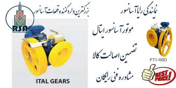 موتور آسانسور ایتال توسط دانشمندان و صنعتگران متخصص ایتالیایی شرکت ایتال گیرز طراحی و به تولید انبوه رسیده است. این موتور آسانسور به صورت تک سرعته و دو سرعته عرضه می شود. موتور ایتال دارای مدل های مختلفی بوده و با استقبال بالای مشتریان روبرو شده است. شرکت ایتال گیرز موتورگیربکس های خود را با توان های 6 و 7/3 کیلووات راهی بازار نموده است. این موتور آسانسور بسیار کم مصرف بوده و از این رو در کاهش هزینه های مصرف برق نقش مهمی ایفا می کند. موتور ایتال در آسانسور های با ترافیک و تعداد توقف متوسط استفاده می شود.  مدل FT1 480 این موتور با کیفیت مطلوبی که دارد توانسته جایگاه مناسبی در بازار کسب نماید.