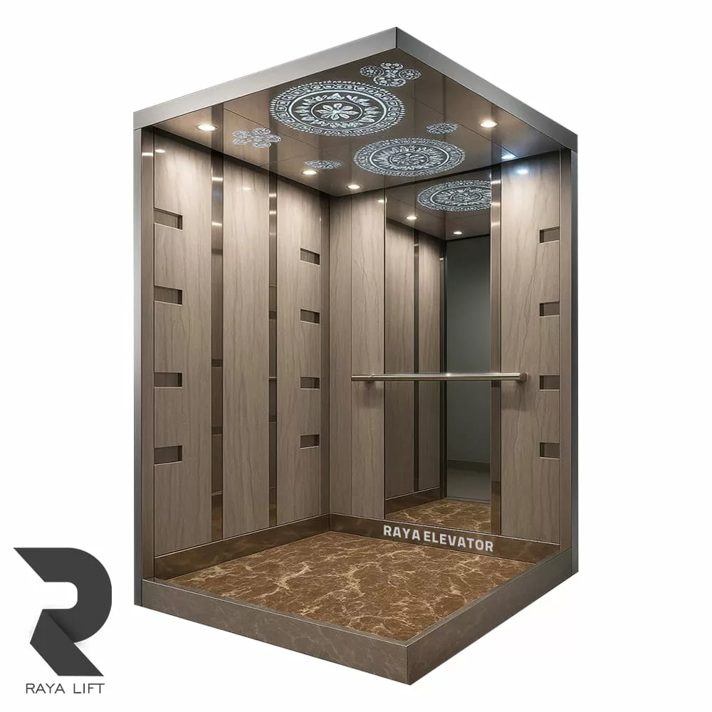 انتخاب کابین آسانسور در فروشگاه آسانسور رایا بر عهده مشتریان است.بر این اساس انواع مختلفی از کابین طراحی می شود.و از دکور و تزییینات مختلفی در آن استفاده می شود.یکی از این دکورها ، پوشش MDF ، استیل است.تلفیق و ترکیب ورق های MDF با ورق استیل تصویر و جلوه ای زیبا را برای آسانسور به وجود می آورد.